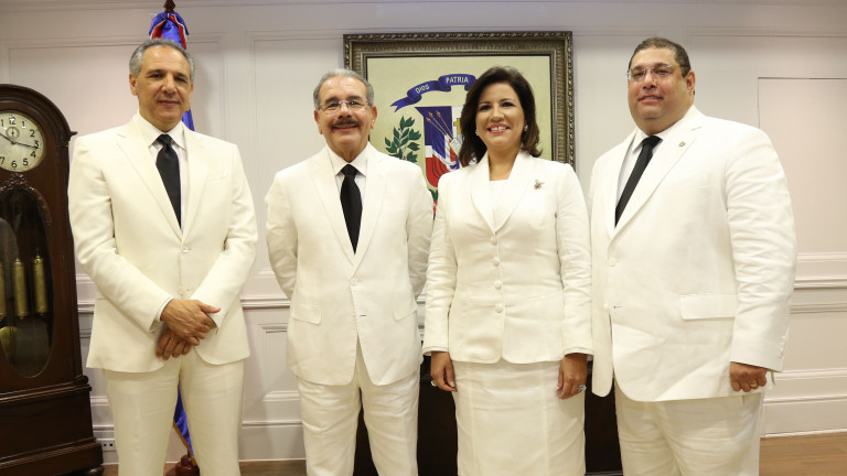 Ministro José Ramón Peralta, presidente Danilo Medina, vicepresidenta Margarita Cedeño de Fernández y Miguel Mercedes.