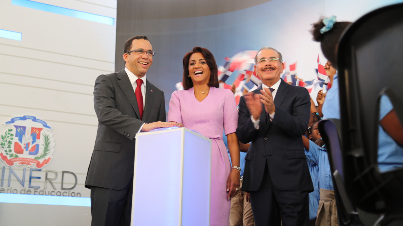 El presidente Danilo Medina encabezó hoy el acto de inauguración del Año Escolar 2016-2017, junto a su esposa, Cándida Montilla de Medina, y el ministro de Educación, Andrés Navarro, en la Escuela Básica Pedro Henríquez Ureña, del sector San Felipe de Villa Mella, municipio Santo Domingo Norte.