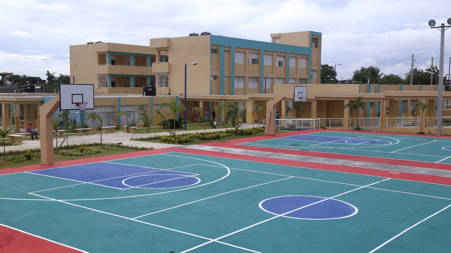 Vista de la cancha deportiva del nuevo centro de estudios,