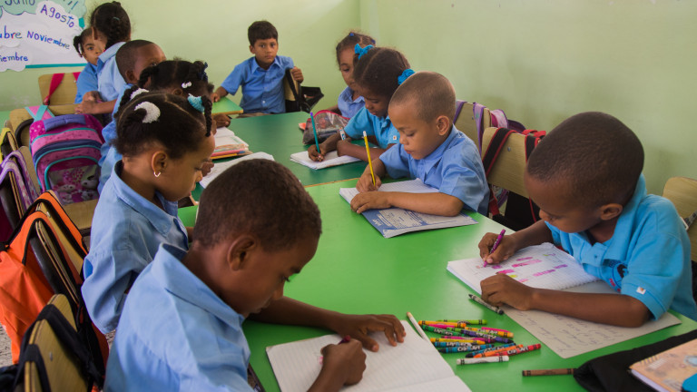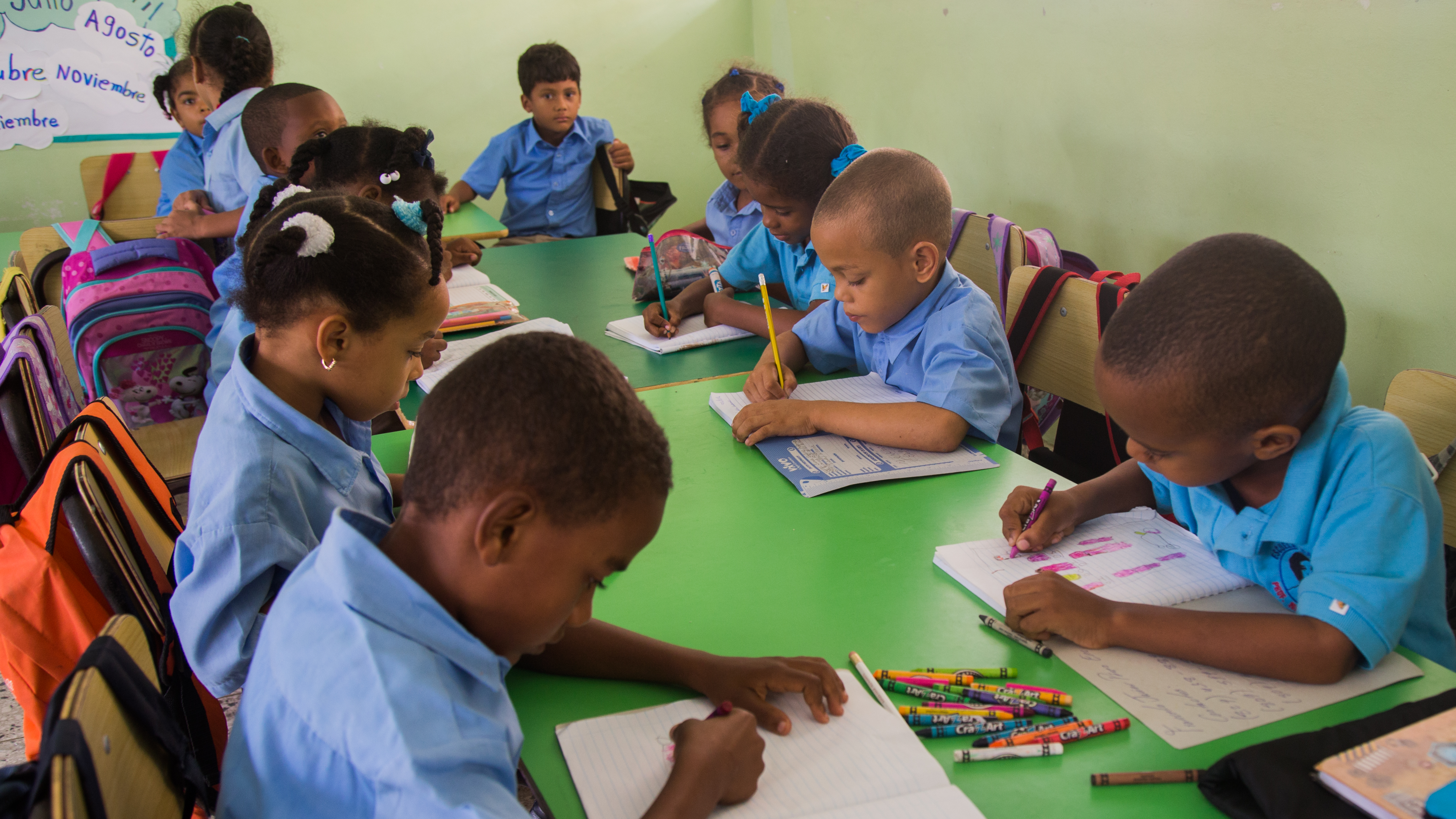 Alumnos de la Escuela Digna Celeste Nova, en Los Mameyes de Santo Domingo Este, incorporada a la Jornada Escolar Extendida.