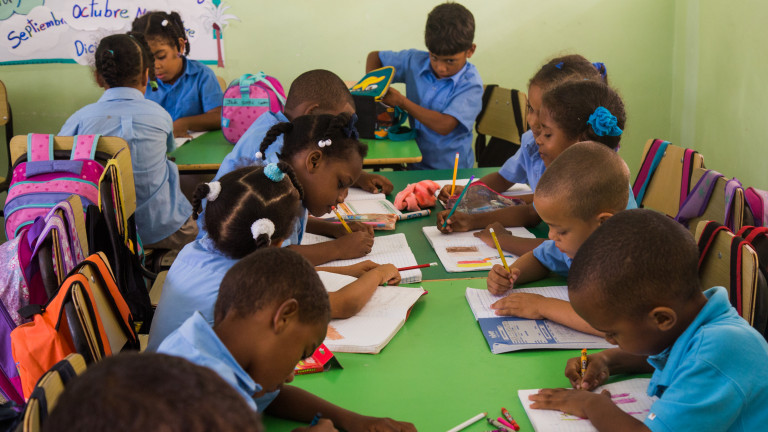 Alumnos de la Escuela Digna Celeste Nova, en Los Mameyes de Santo Domingo Este, incorporada a la Jornada Escolar Extendida.