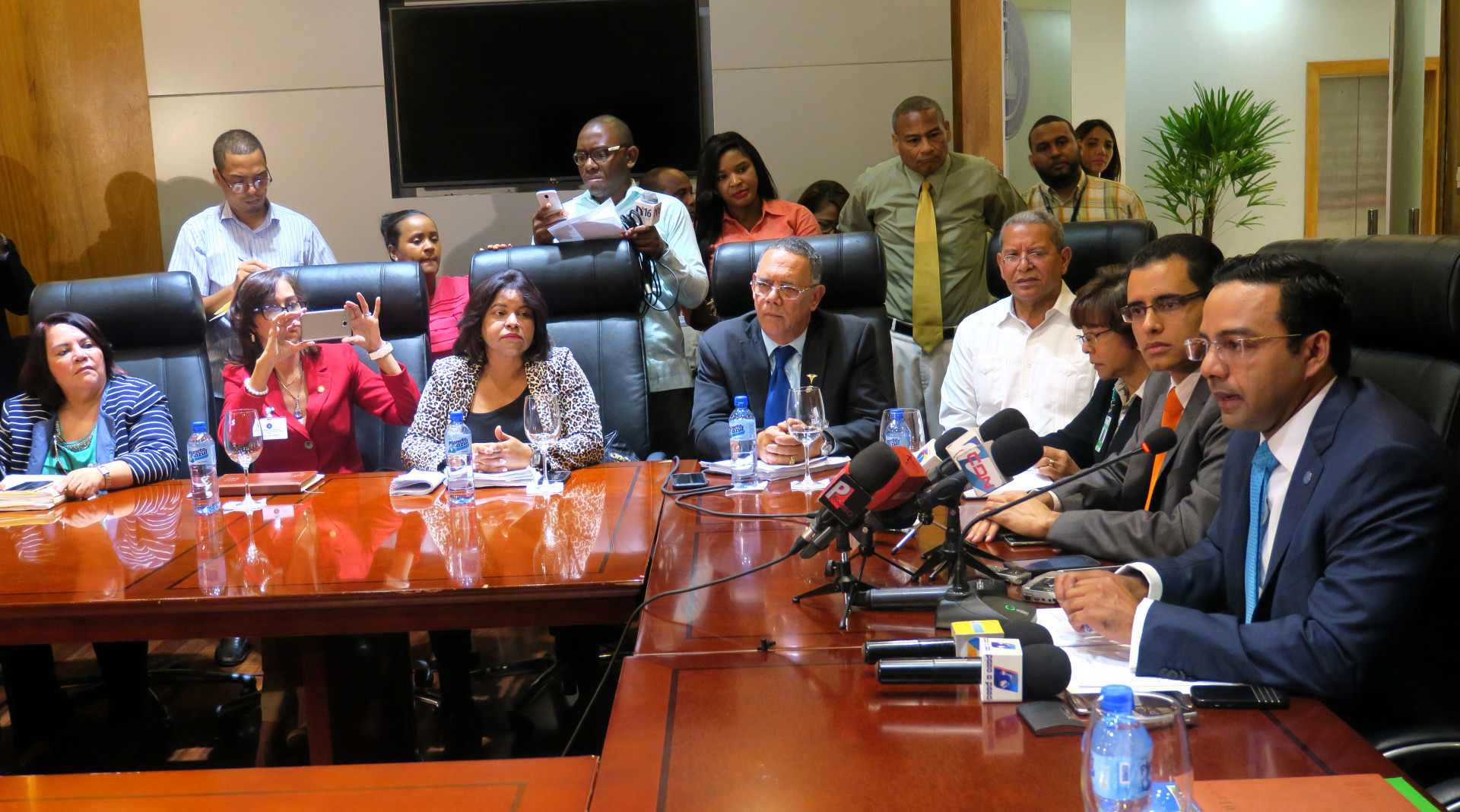 Marius De León, director de la División de Dirección General de Jubilaciones y Pensiones a Cargo del Estado (DGJP), en reunión con representantes de 21 gremios de la salud, para recibir información sobre la verificación de los más de 6,500 servidores de ese sector pensionados.