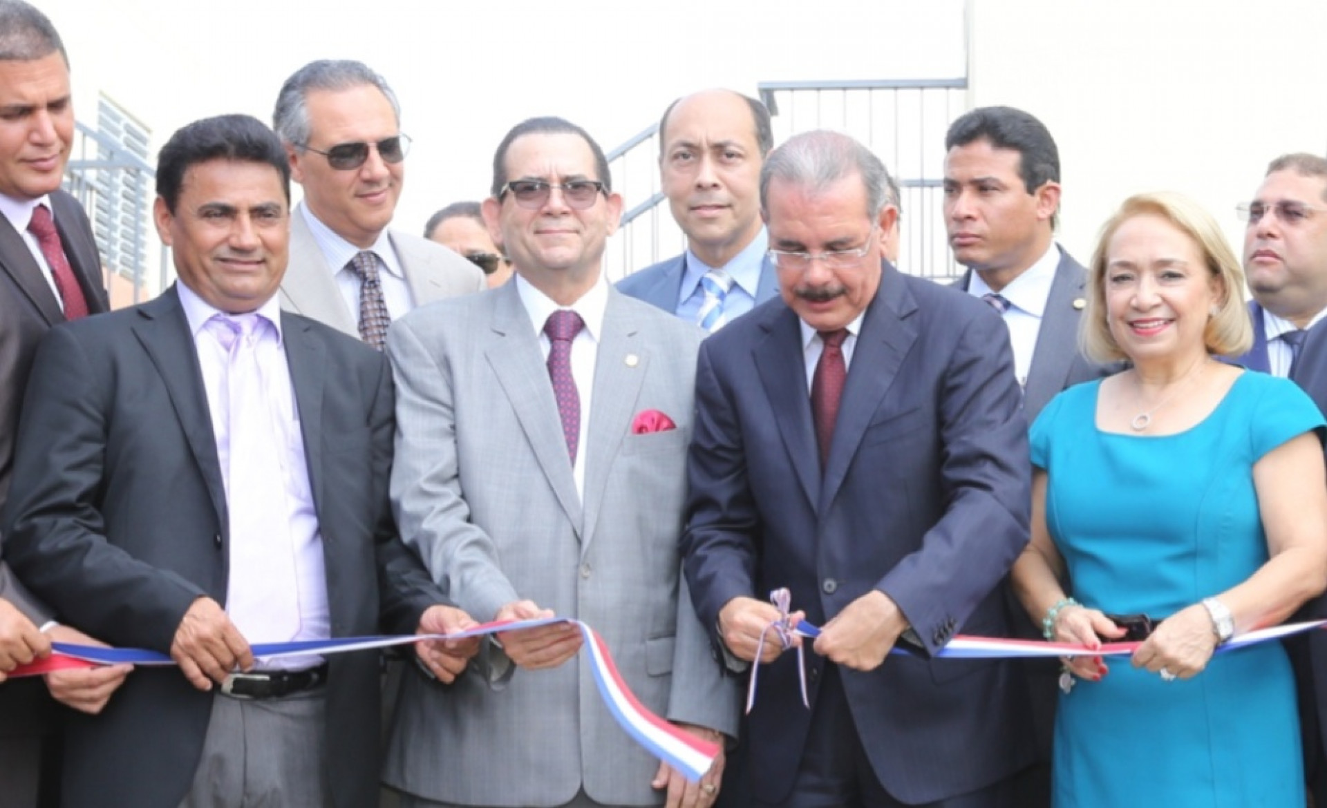 Presidente Medina encabezando el corte de cinta inaugural por entrega de 224 viviendas e inicio de otras 800, efectuado hoy en Villa Tapia, provincia Hermanas Mirabal.