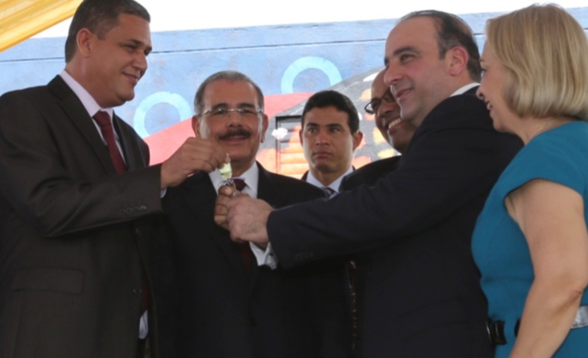 El presidente Medina y otros funcionarios durante el acto realizado por entrega 224 viviendas e inicio de otras 800, en Villa Tapia, de la provincias Hermanas Mirabal.