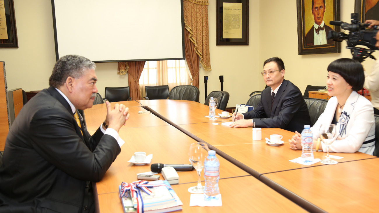 Fu Xinrong, nueva representante permanente de la Oficina de Desarrollo Comercial de la República Popular China en el país, durante su visita de cortesía al ministro para Políticas de Integración Regional, Miguel Mejía, en el Salón Los Trinitarios del Palacio Nacional.