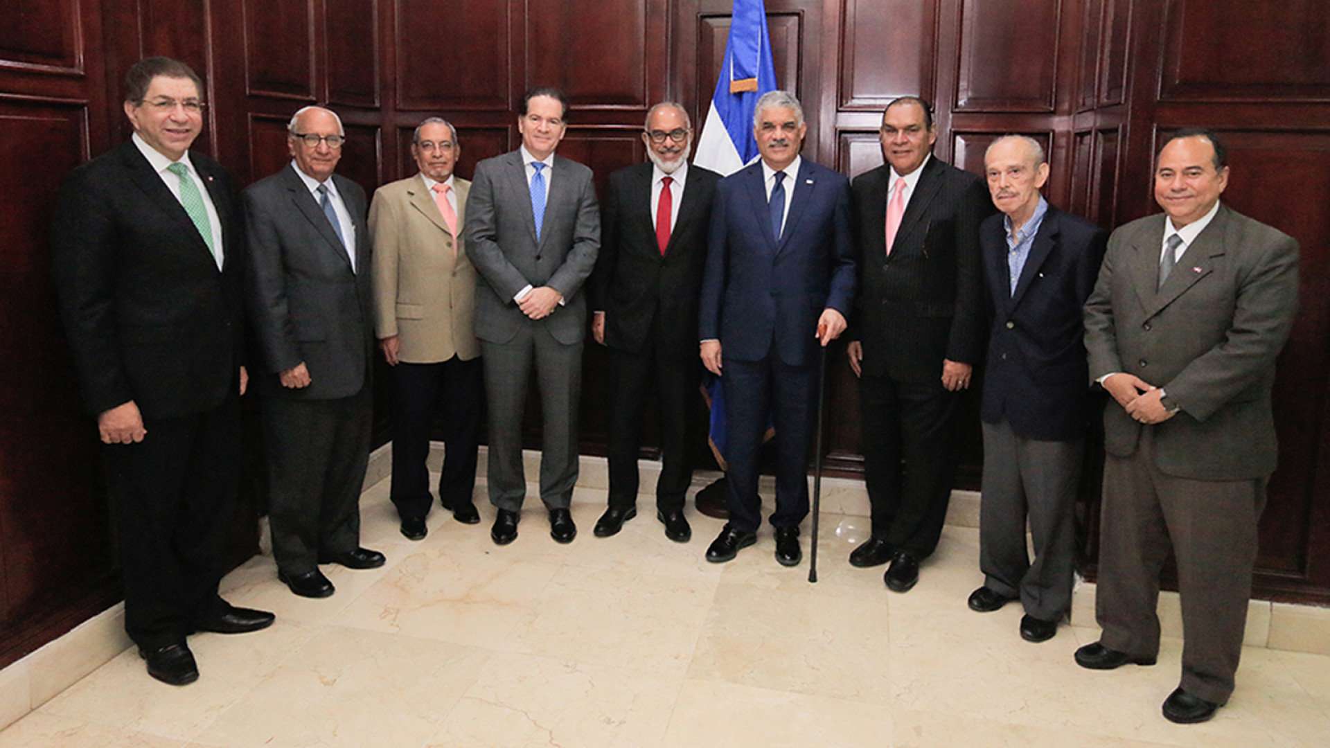 El ministro de Relaciones Exteriores, Miguel Vargas con directores y otros representantes de los medios agrupados en la Sociedad Dominicana de Diarios (SDD), entre ellos Persio Maldonado, director de El Nuevo Diario; Enmanuel Castillo, director de La Información; Miguel Franjul, director del Listín Diario; Adriano Miguel Tejada, director de Diario Libre. Asimismo, Manuel Corripio, vicepresidente del Grupo Corripio; Rafael Molina Morilla, director de El Día; Nelson Marrero, subdirector de Hoy y Alberto Caminero, editor político de El Nacional.