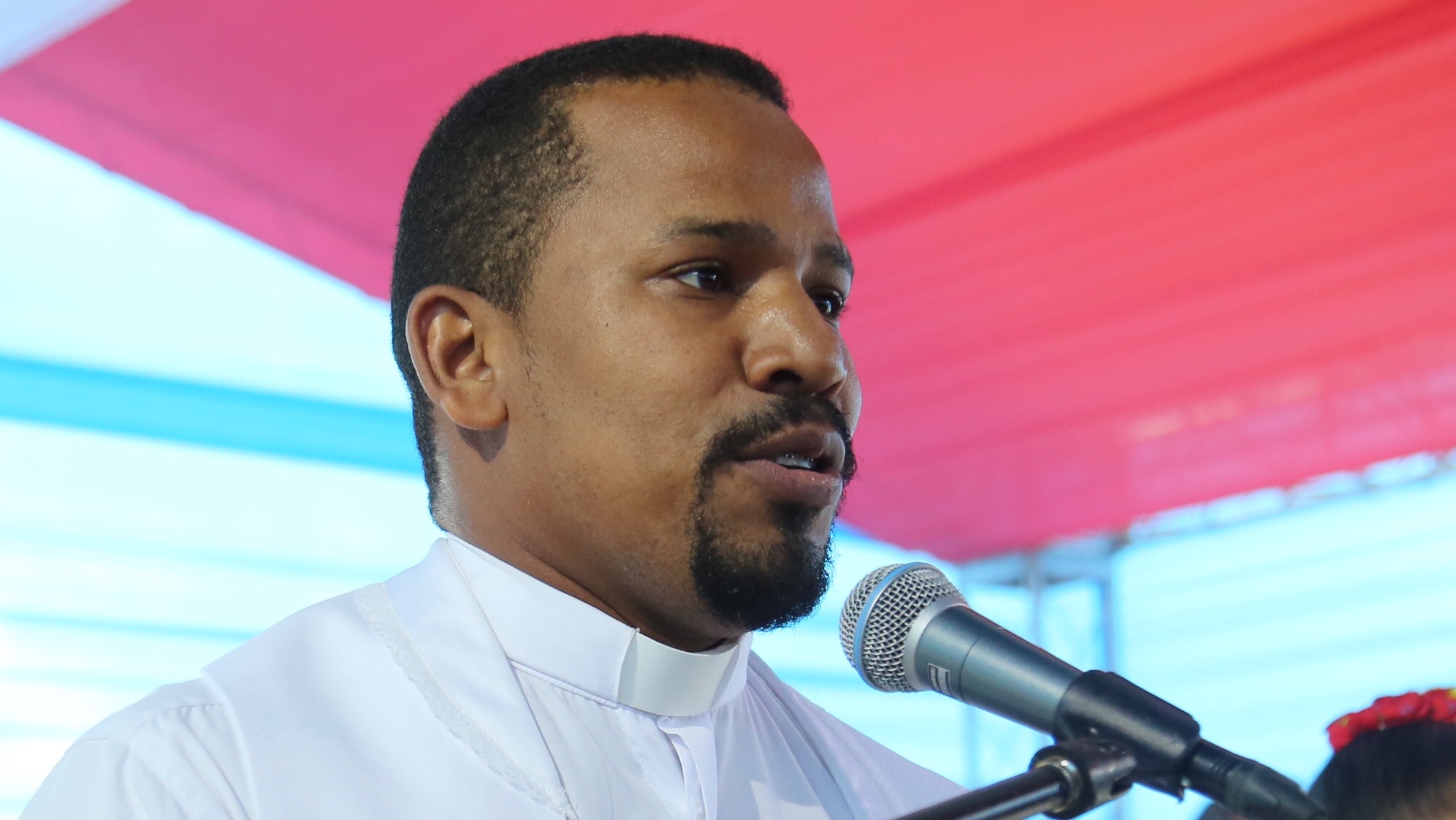 Pascual Reinoso Ruiz, párroco de la parroquia San Francisco de Asís, tuvo a su cargo la bendición de la Escuela Básica Ángel Emilio Casado, en Sabana Larga, San José de Ocoa.