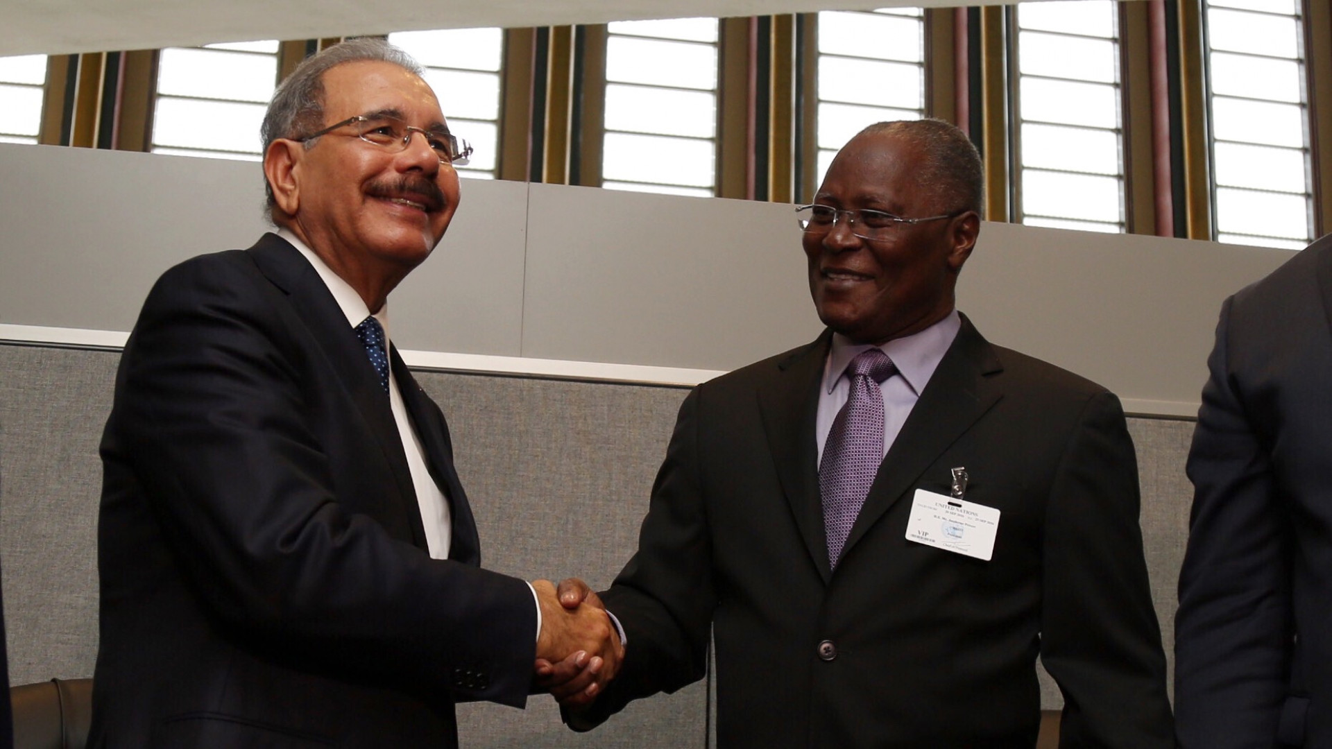 Reunión bilateral de presidente Danilo Medina y su homólogo de Haití, Privert, donde acordaron un encuentro entre sus respectivos cancilleres y directores de Aduanas. Dicho encuentro se desarrolló en el marco de la 71 Asamblea General de las Naciones Unidas, en New York.