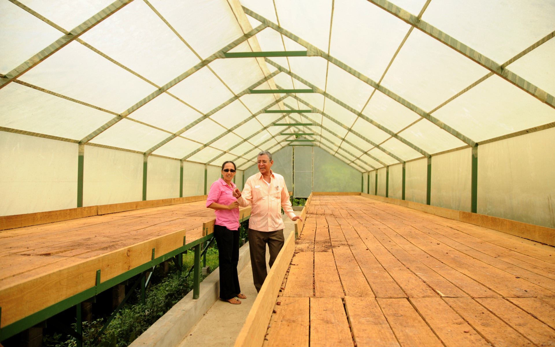 El director de Fondo Especial para el Desarrollo Agropecuario (FEDA), Antonio López, al recorrer las nuevas instalaciones de viveros para la producción agrícola.