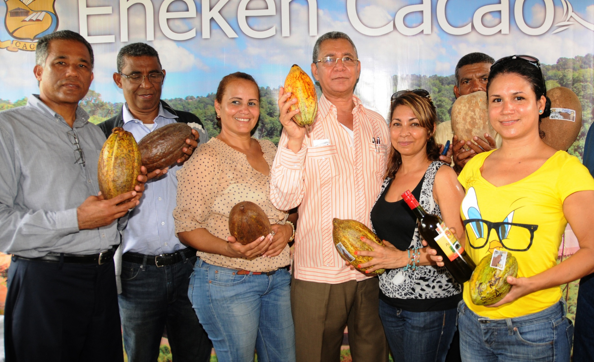 El director de FEDA y representantes de las asociaciones de productores de Joba Arriba, al mostrar parte de su cosecha.