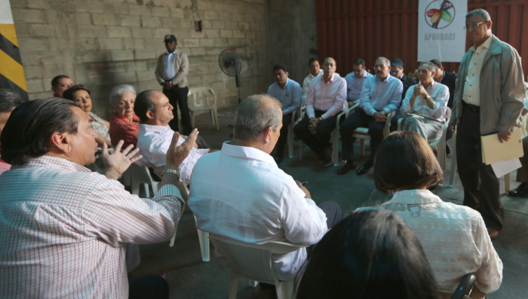 Participantes del encuentro del presidente Medina con productores de la provincia Hermanas Mirabal, durante su visita sorpresa de este domingo.