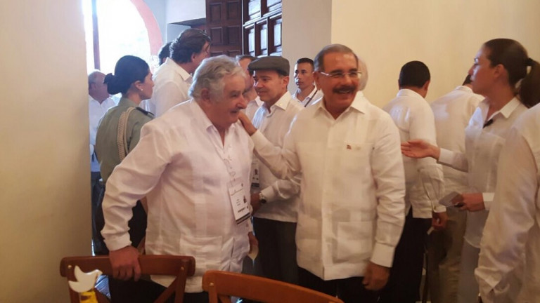 El presidente Danilo Medina comparte con al señor José (don Pepe) Mujica, quien fue mediador en el proceso de paz.
