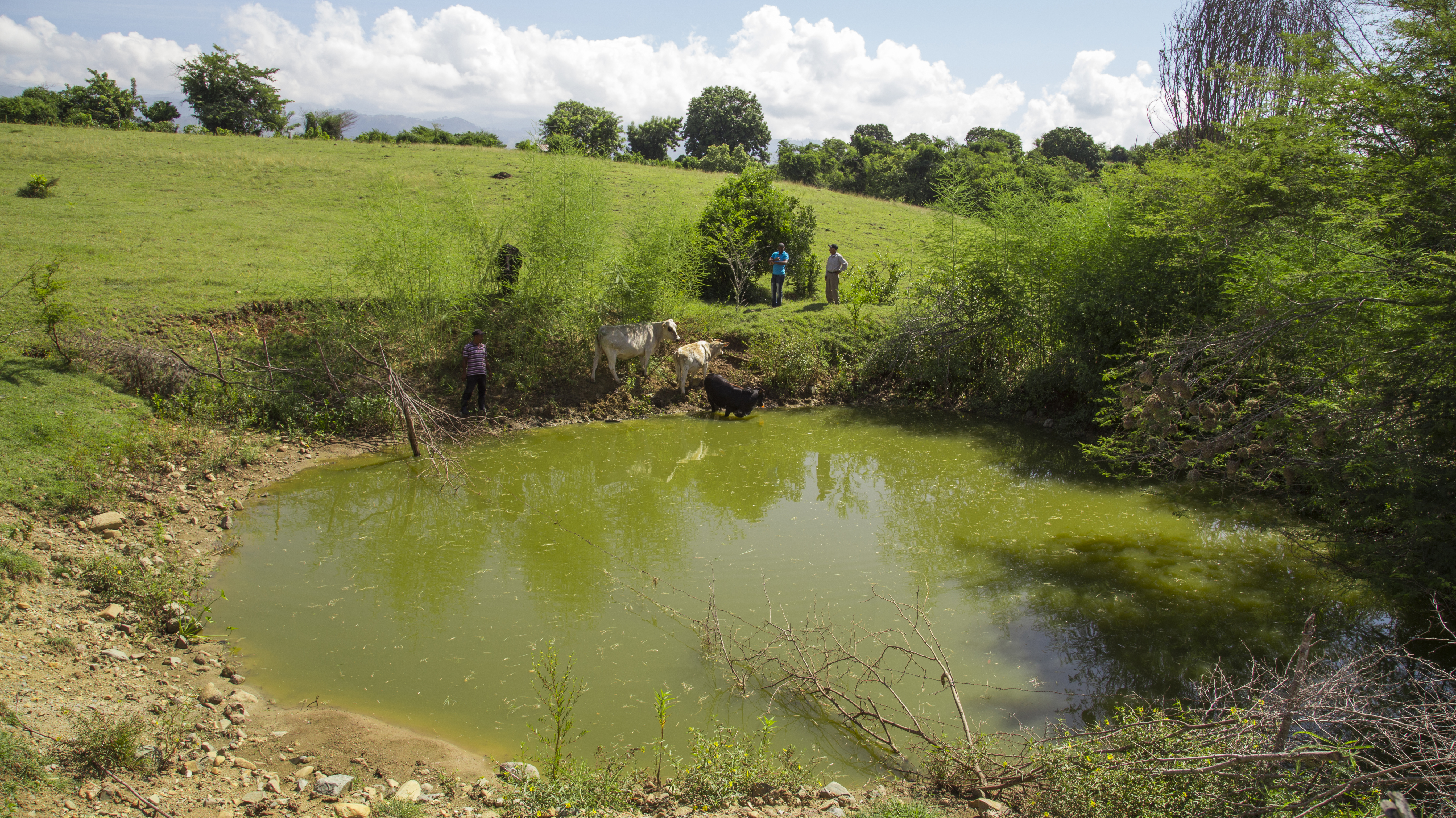 Ganaderos de Hato del Padre y agricultores de la Asociación de productores San Isidro, en Los Portugueses Abajo, ambos en San Juan de la Maguana, agradecen al gobierno la construcción de 115 lagunas de agua dulce para resistir la fuerte sequía que les afectaba.