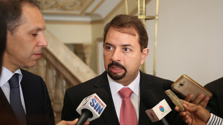 Oscar Peña, presidente de la empresa telefónica Claro Dominicana, responde preguntas a periodistas que cubre fuente del Palacio Nacional.
