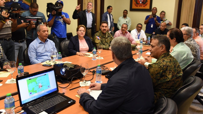 El ministro de la Presidencia, Gustavo Montalvo reunido hoy con autoridades de organismos y entidades públicas responsables de prevención y mitigación de riesgos, para coordinar acciones que se deben tomar antes, durante y después del paso del huracán Matthew, atendiendo a instrucciones del presidente de la República, Danilo Medina.