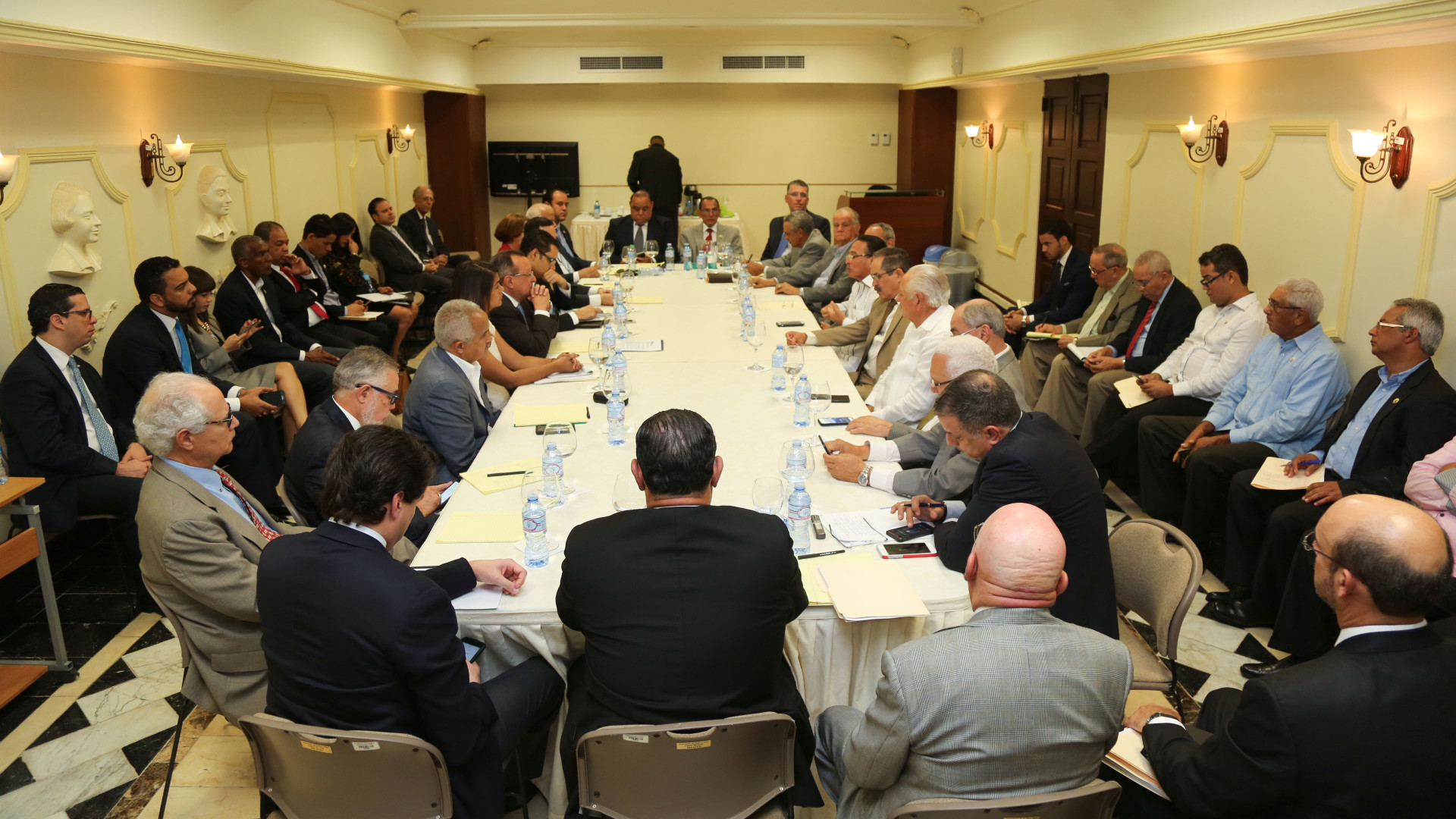 Reunión encabezada por el ministro de Agricultura, Ángel Estévez, con productores de cerdo, leche y azúcar para evaluar el impacto del proceso de desgravación arancelaria y de apertura comercial que implica el DR CAFTA.