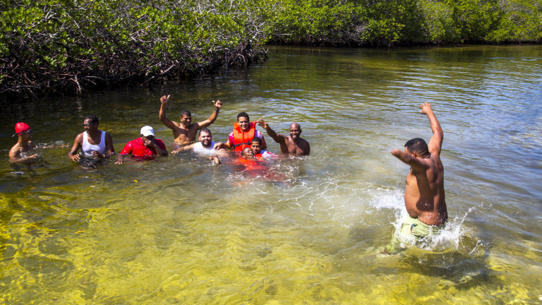 Participantes del programa "Saliendo del Escondite", que busca la inclusión social de las personas con discapacidad, dispuesto por el Gobierno a través del CONADIS. En esta ocasión visitaron El Morro, en Montecristi.