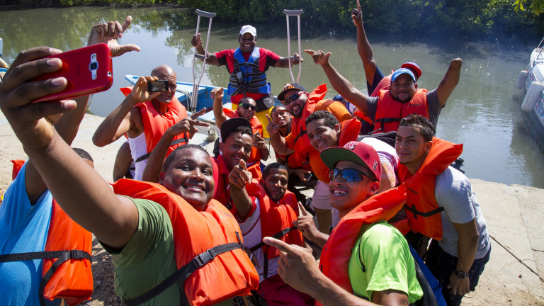 Participantes del programa "Saliendo del Escondite", que busca la inclusión social de las personas con discapacidad, dispuesto por el Gobierno a través del CONADIS. En esta ocasión visitaron El Morro, en Montecristi.