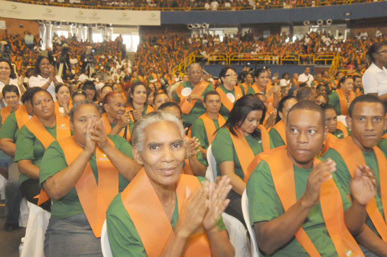 Acto de reconocimiento a los primeros egresados del Plan Quisqueya Aprende Contigo, encabezado por el jefe de Estado, Danilo Medina, la Vicepresidenta de la República, la Primera Dama y altos funcionarios. Celebrado en el Palacio de los Deportes Virgilio Travieso Soto, Santo Domingo, el 15 de agosto de 2013. EM Nota de prensa: presidencia.gob.do/comunicados/danilo-medina-%E2%80%9Cen-... presidencia.gob.do/comunicados/adultos-alfabetizados-quie...