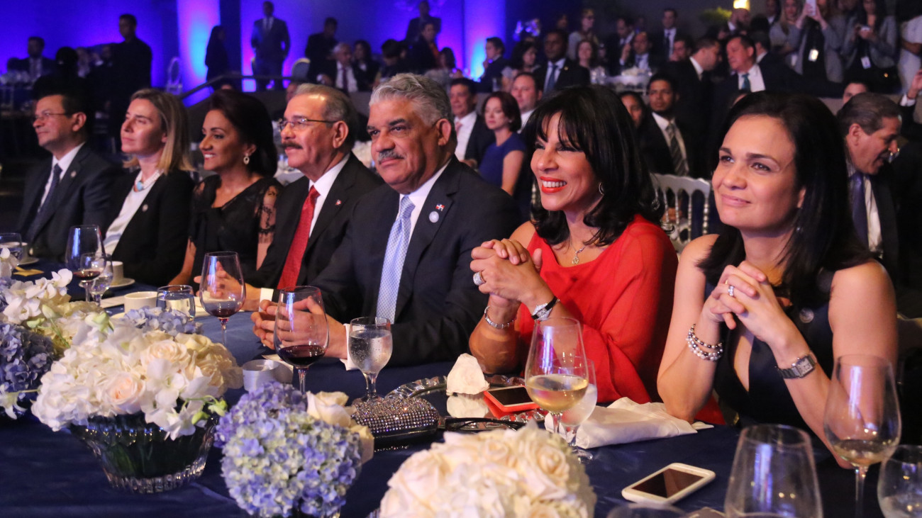 Desde la izquierda Federica Mogherini, Cándida Montilla de Medina, el presidente Danilo Medina, el canciller Miguel Vargas y esposa Angelita García de Vargas, entre otras distinguidas personalidades.