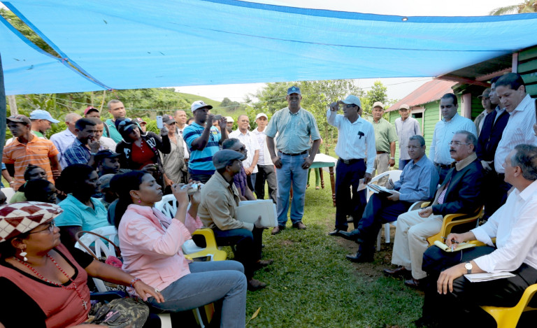 Presidente Medina reunido con productores de esta comunidad en su Visita Sorpresa de este domingo, donde además estaban presentes el ministro Administrativo de la Presidencia, José Ramón Peralta, del director del Fondo Especial para el Desarrollo Agropecuario (FEDA), Antonio López y del ingeniero Justo Guzmán, Coordinador Ejecutivo de los Proyectos de la Presidencia de la República.