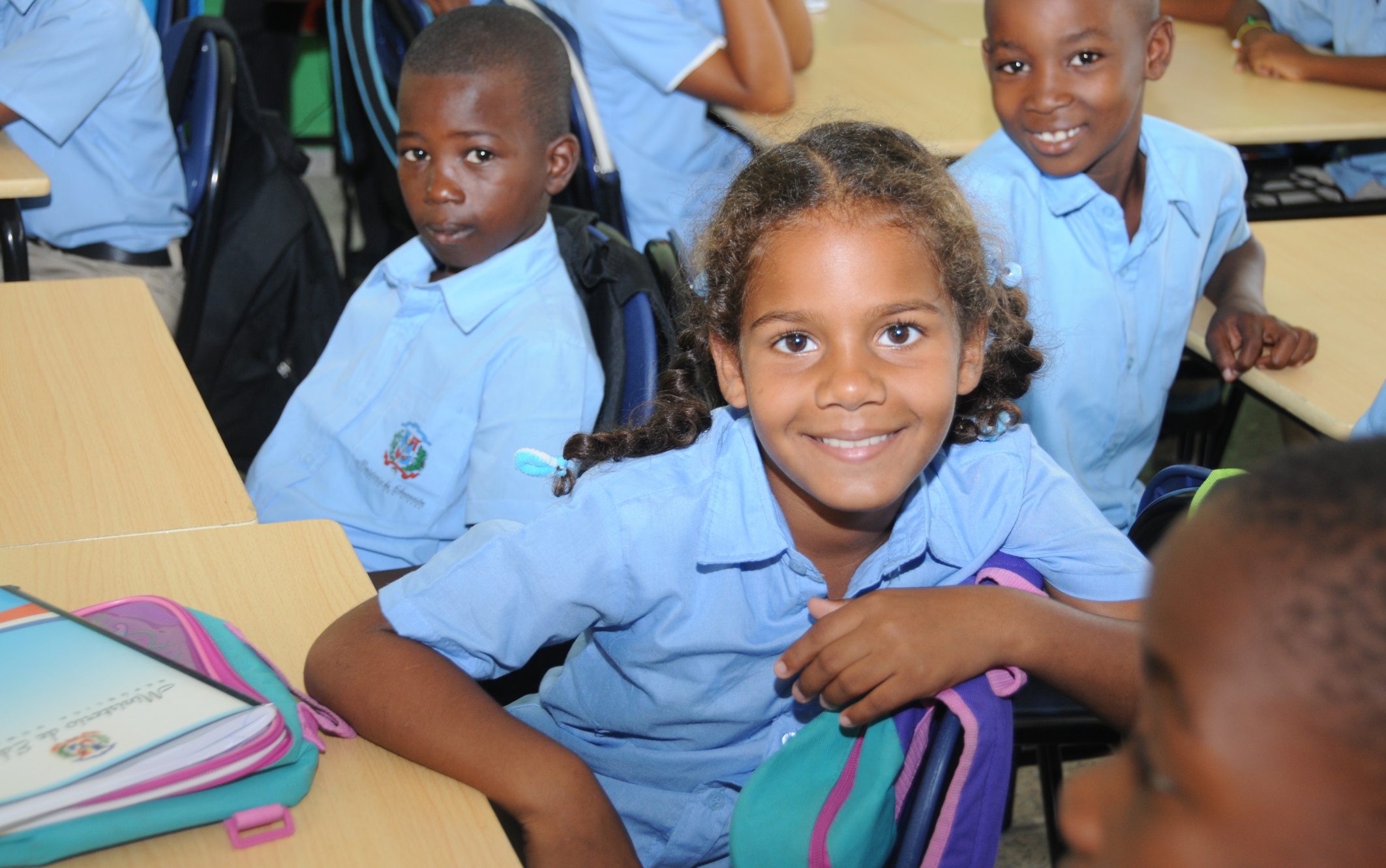 Caritas felices captadas durante acto inaugural por inicio del Año Escolar 2013-2014, en Montellano, Puerto Plata, encabezado por el presidente Danilo Medina.