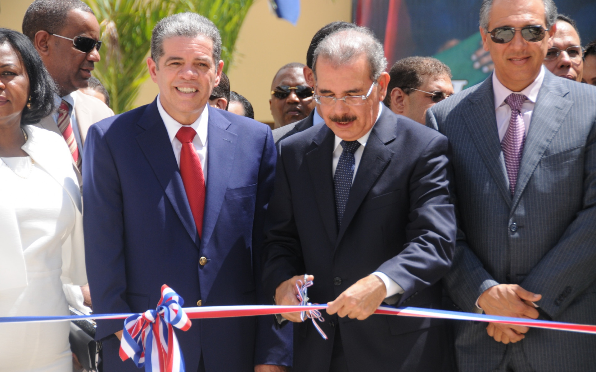 Corte de cinta en acto de inicio año escolar 2013-2014, encabezado por el presidente Danilo Medina. Figuran además, el ministro de Educación, Carlos Amarante Baret y el ministro administrativo de la Presidencia, José Ramón Peralta, entre otras autoridades.