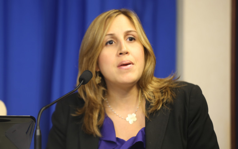 La directora de Educación Inicial del Ministerio de Educación, Clara Báez, una de las panelista invitada en el Encuentro con los Medios, celebrado hoy en el Salón Orlando Martínez, del Palacio Nacional.
