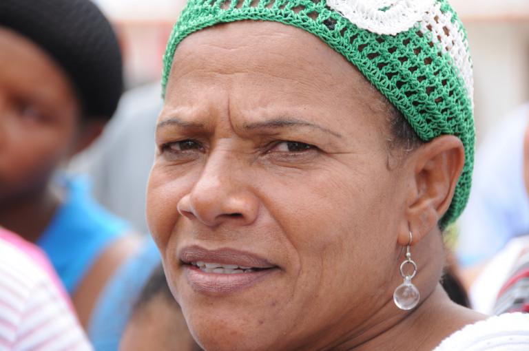 Moradora afectada por las crecidas del Lago Enriquillo, durante la visita de seguimiento realizada por el ministro Peralta y la comisión dispuesta por el presidente Danilo Medina.
