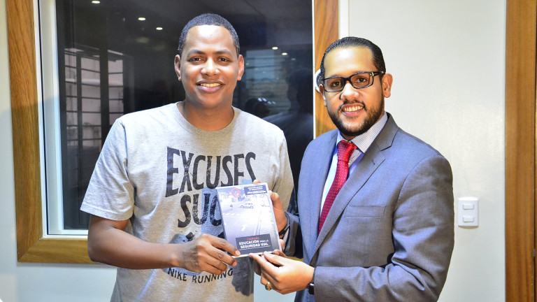 El comunicador Bolívar Valera (Boli) recibió de Leonardo Grisanty, parte del material de apoyo de la campaña de EducaciónSeguridadVialRD que realiza el Ministerio de la Presidencia mediante DICOM.