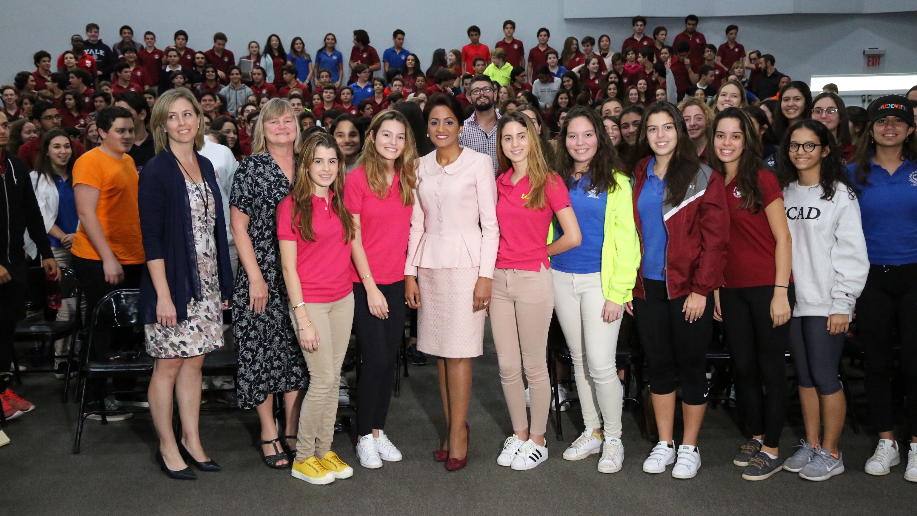 Participación del la primera dama, Cándida Montilla de Medina, como oradora invitada del Colegio Carol Morgan y el Club de Liderazgo Femenino, quien impartió una conferencia sobre violencia de género dirigida a estudiantes del centro de estudios.