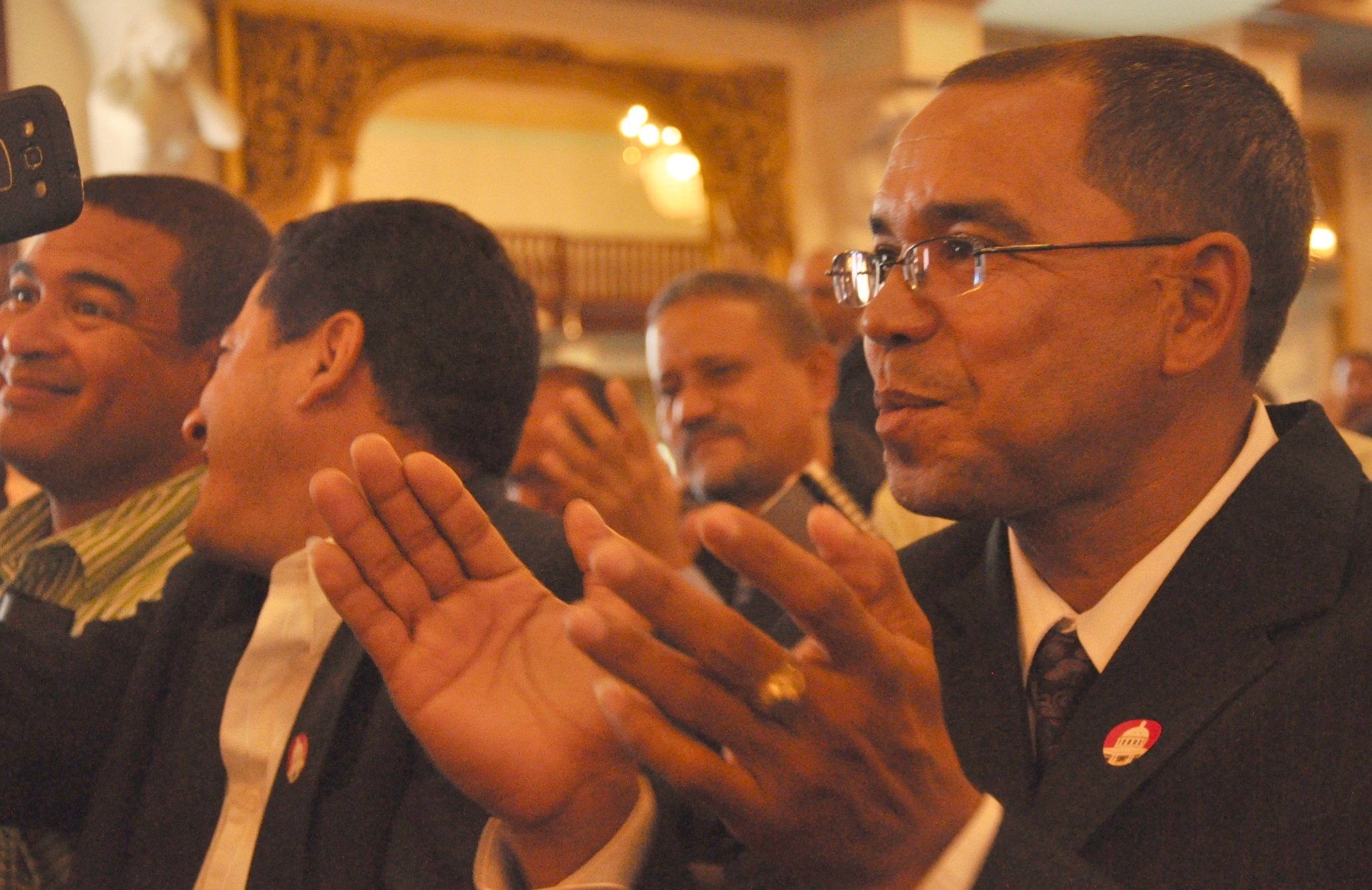 Público asistente a la reunión de ingeniero responsables de la construcción y reparación de escuelas, encabezada por el presidente Danilo Medina, y efectuada hoy en el Salón de Las Cariátides del Palacio Nacional.
