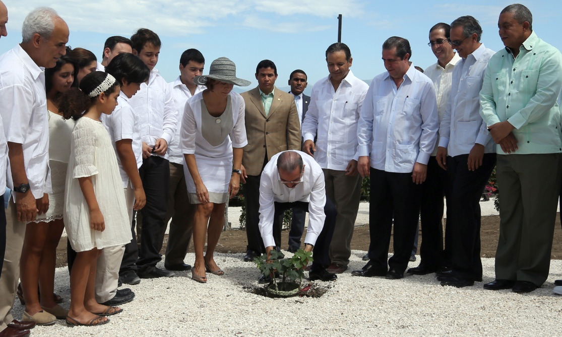 El presidente de la República, Danilo Medina acompañado de la señora Soraya Méndez, vicepresidenta del proyecto agroturístico Ocoa Bay, encabezan acto inaugural de sembrar juntos una planta de vid “Misiones”. Figuran también otros ejecutivos del proyecto e invitados especiales,