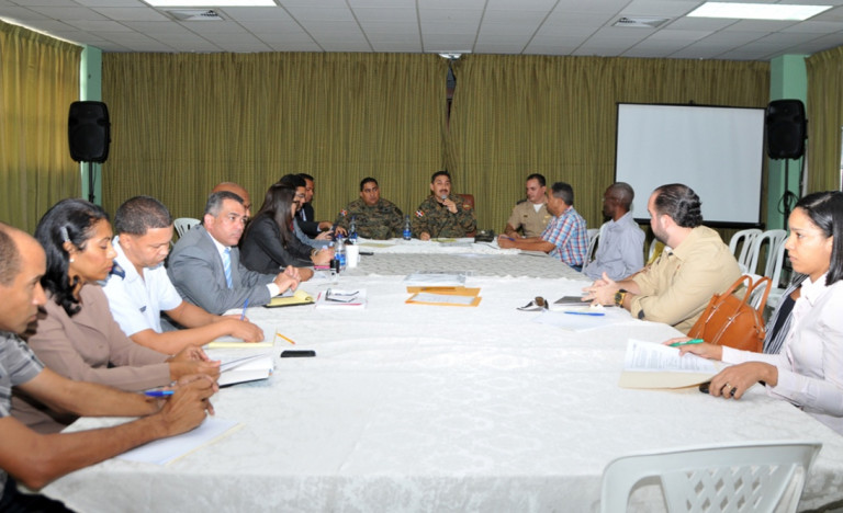 Encuentro por licitación para la construcción del proyecto habitacional Boca de Cachón, Jimaní, en favor de moradores afectado por las inundaciones provocadas por el Lago Enriquillo, y conforme instrucciones recibidas del presidente Danilo Medina. Figuran entre los presentes, el director de Promoción de Comunidades Fronterizas, mayor general Rafael Emilio de Luna Pichirilo y una comisión del Ministerio Administrativo de la Presidencia integrada por Paola Vásquez, Carlos Guiliani, Luís Emilio de la Cruz y Raúl Nina, entre otros.