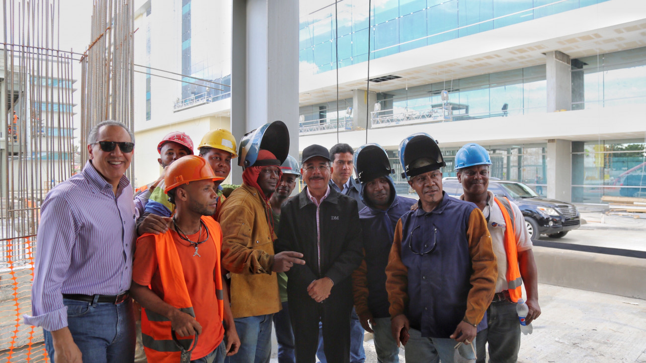El presidente Danilo Medina supervisó los trabajos de la Ciudad Sanitaria Luis Eduardo Aybar (Morgan). Allí conversó con los ingenieros a cargo de la obra y saludó trabajadores de la construcción.