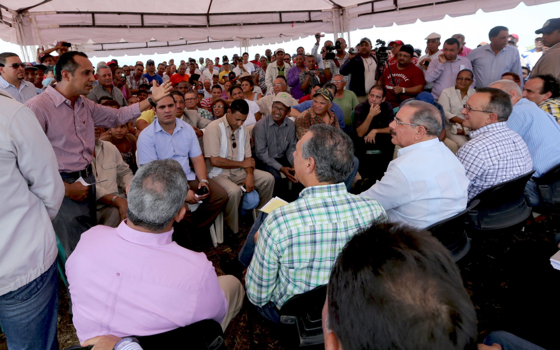 El presidente Danilo Medina reunido con ganaderos de la línea noroeste que se dedican a la producción de lechera. presentes durante el encuentro. Foto: Presidencia de la República.Foto: Presidencia de la República.