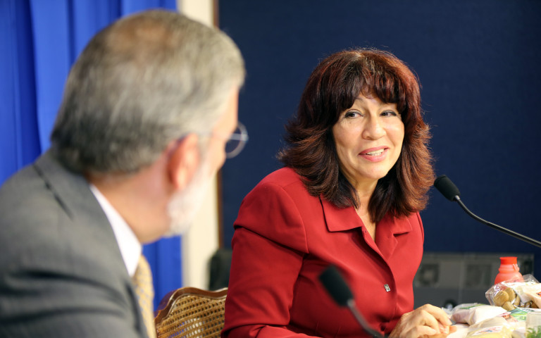 Participación de Bernarda Castillo, directora ejecutiva del Instituto de Innovación en Biotecnología e Industria (IIBI), en el Encuentro Semanal con los Medios de Comunicación que organiza DICOM .Salón Orlando Martínez, Palacio Nacional. 2 de septiembre de 2013. EM