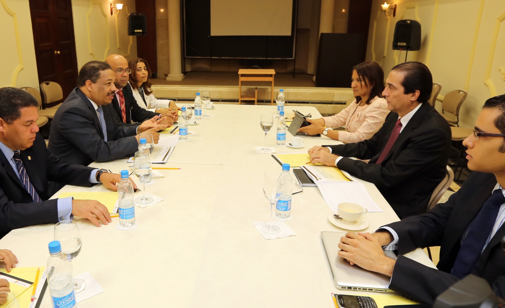 Reunión encabezada por el ministro de la Presidencia, Gustavo Montalvo y el presidente de la JCE, Roberto Rosario Márquez; y Joel Lantigua, director de Elecciones. Figuran además, Franklin Frías, de Cómputos, Dolores Fernández, de Registro Civil y Félix Reyna, de Comunicaciones, presentes en la reunión sostenida a fin de presentar al gobierno algunos proyectos a estudiar, entregados hoy en el Palacio Nacional.
