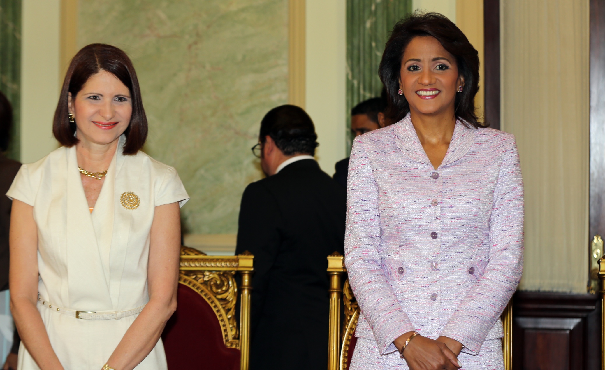 Cándida Montilla de Medina, primera dama de la República, acompañada de su homologa, la primera dama de Panamá, Marta Linares de Martinelli, al inicio de la conferencia sobre autismo efectuada en el Salón Verde del Palacio Nacional.