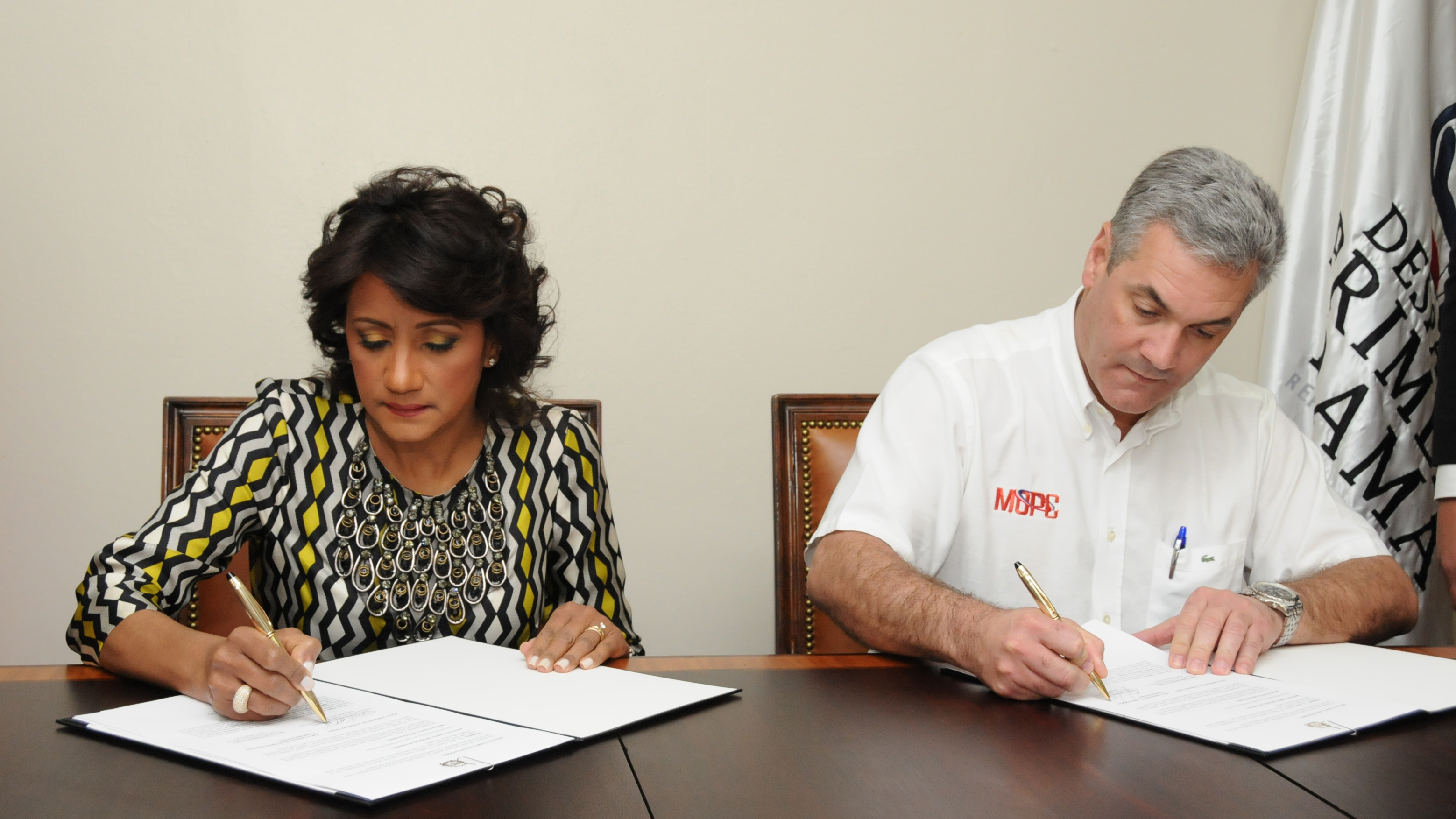 La primera dama Cándida Montilla de Medina también ha firmado acuerdos con los ministerios de Educación, de Salud Pública; de las Fuerzas Armadas; y de Obras Públicas. SeNaSa, INFOTEP e INPOSDOM, y otras instituciones.