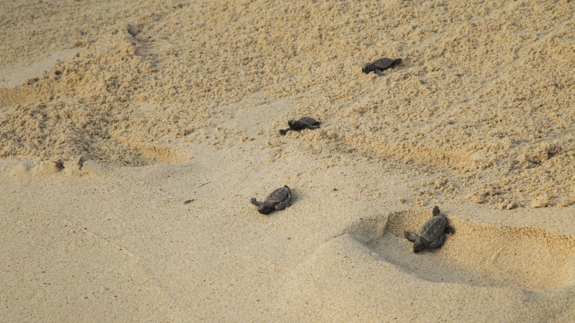 64 días después de estar hospedadas con todo el lujoso cariño del Hotel Catalonia, en Bayahibe, República Dominicana, 111 tortuguitas Carey caminan decididas hacia el mar. 21 de Enero de 2017. EM