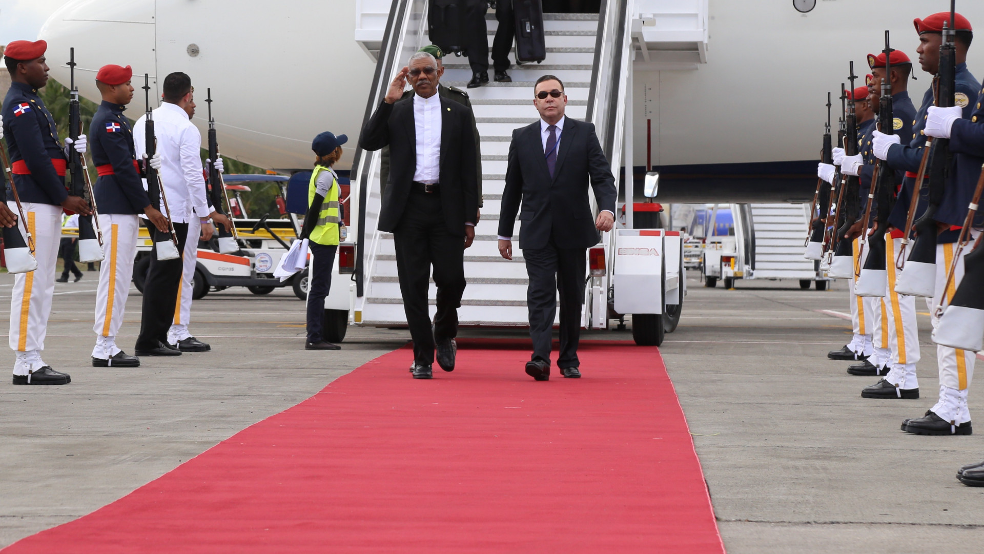 David Granger, presidente de Guyana, al momento de su llegada al Aeropuerto Internacional de Punta Cana.