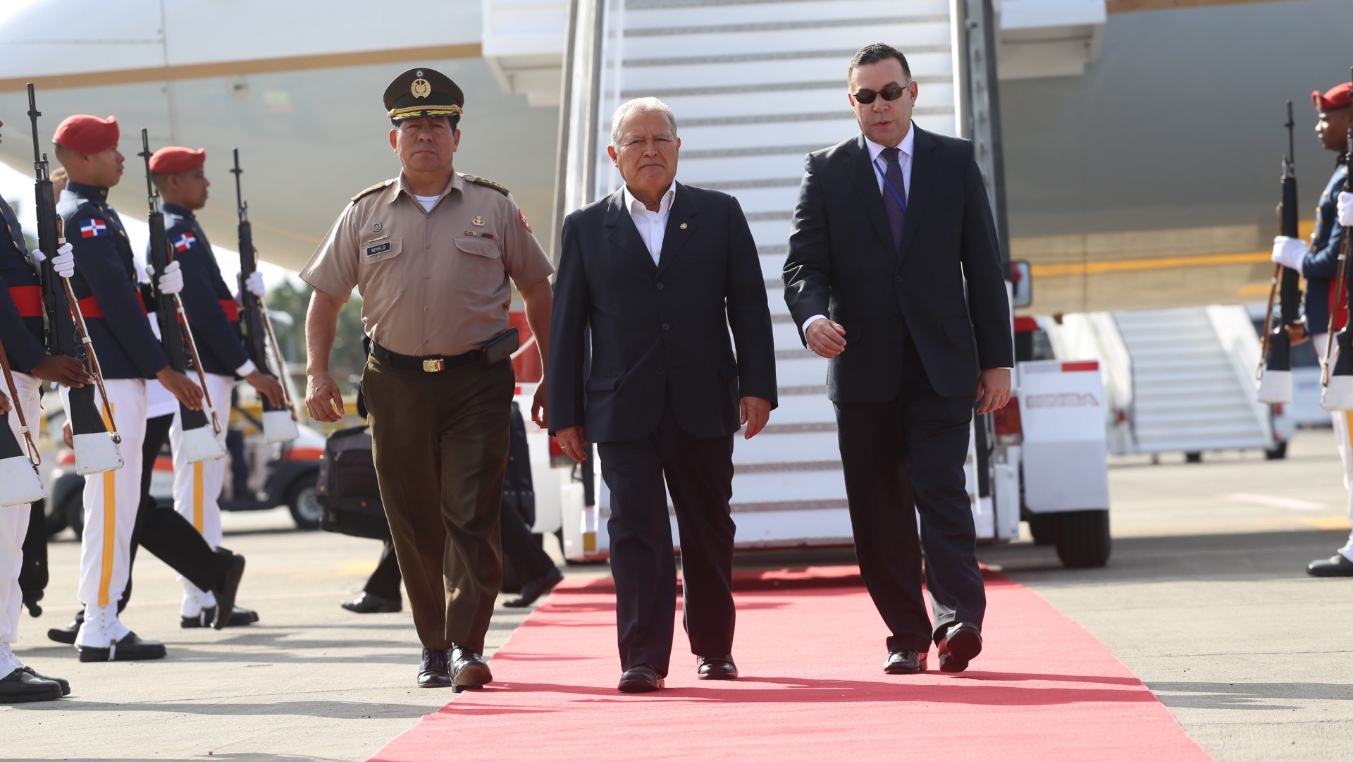 El presidente de El Salvador, Salvador Sánchez Cerén, al momento de llegar al la República Dominicana para asistir a la cumbre de la Celac.