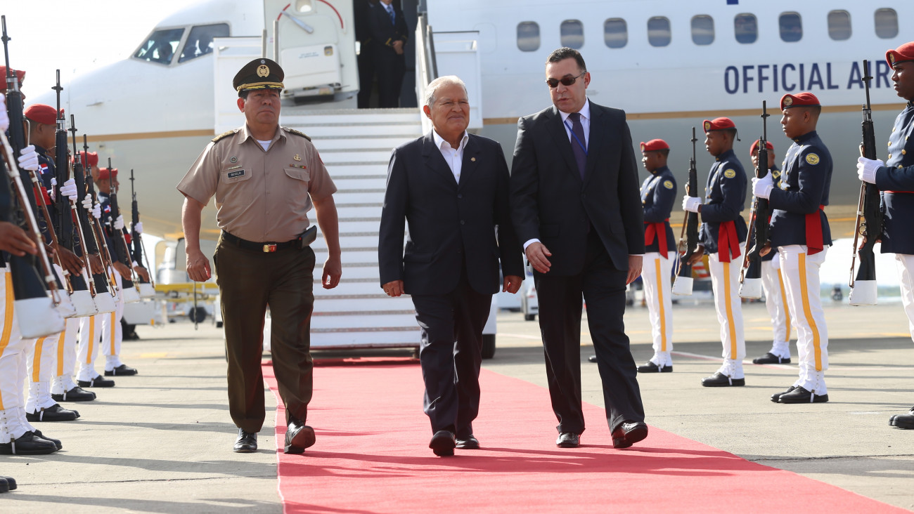 El presidente de El Salvador, Salvador Sánchez Cerén, al momento de llegar al la República Dominicana para asistir a la cumbre de la Celac.