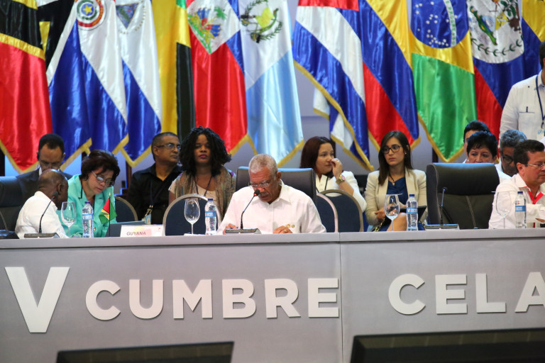 David Granger, presidente de Guyana, durante su discurso ante los participantes en la cumbre de la Celac.