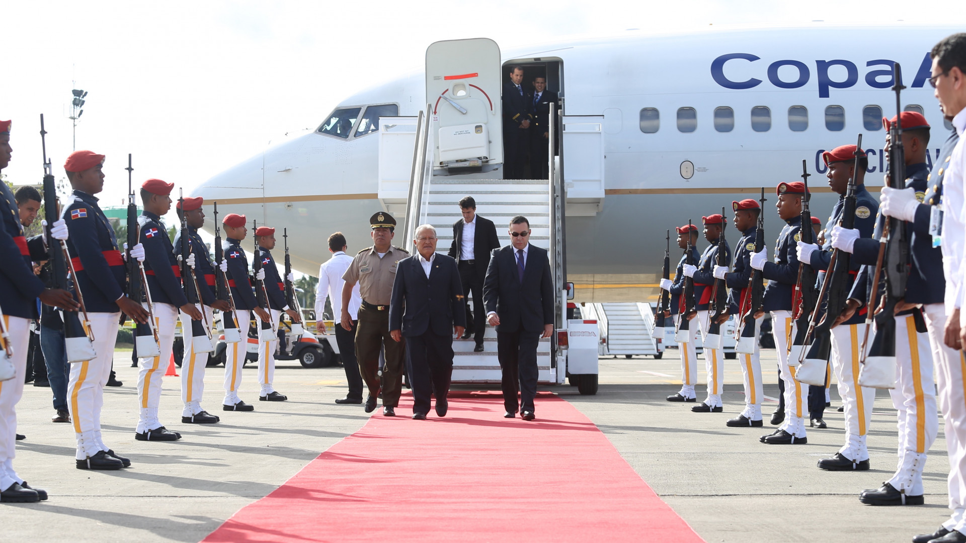 El presidente de El Salvador, Salvador Sánchez Cerén, al momento de su llegada al la República Dominicana para asistir a la cumbre de la Celac.