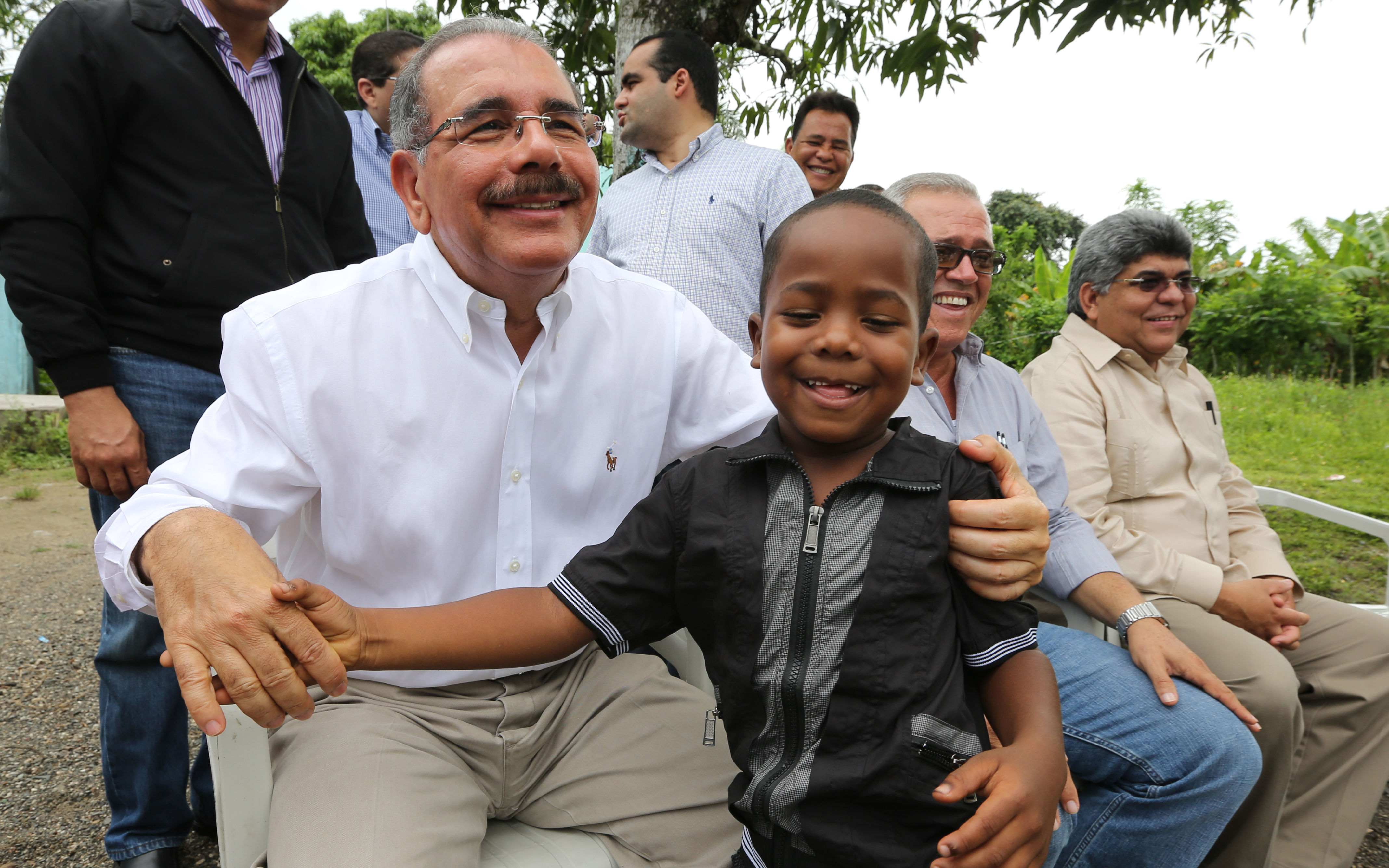 El presidente Danilo Medina con niño del municipio de Guayabo Dulce, Hato Mayor, presente en el encuentro con productoras de la zona, durante una de sus acostumbradas Visitas Sorpresas.