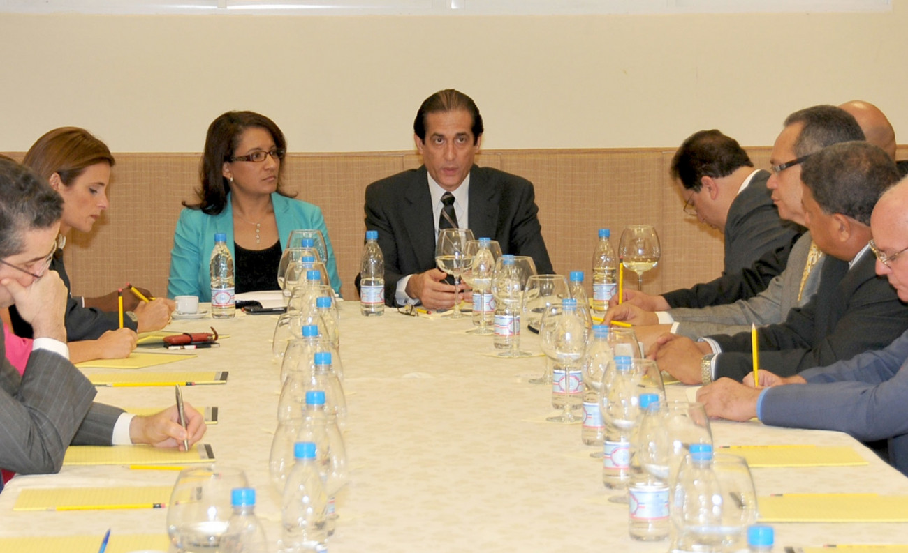 Vista de la reunión encabezada por el ministro de la Presidencia de la República, Gustavo Montalvo, con representantes del sector empresarial, para ofrecer detalles sobre el Sistema Nacional de Emergencias, y Seguridad 9-1-1.