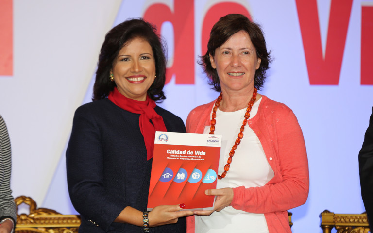 Vicepresidenta de la República, Margarita Cedeño de Fernández, al entregar un ejemplar del estudio a la señora María de Jesús Conde, representante de UNICEF.