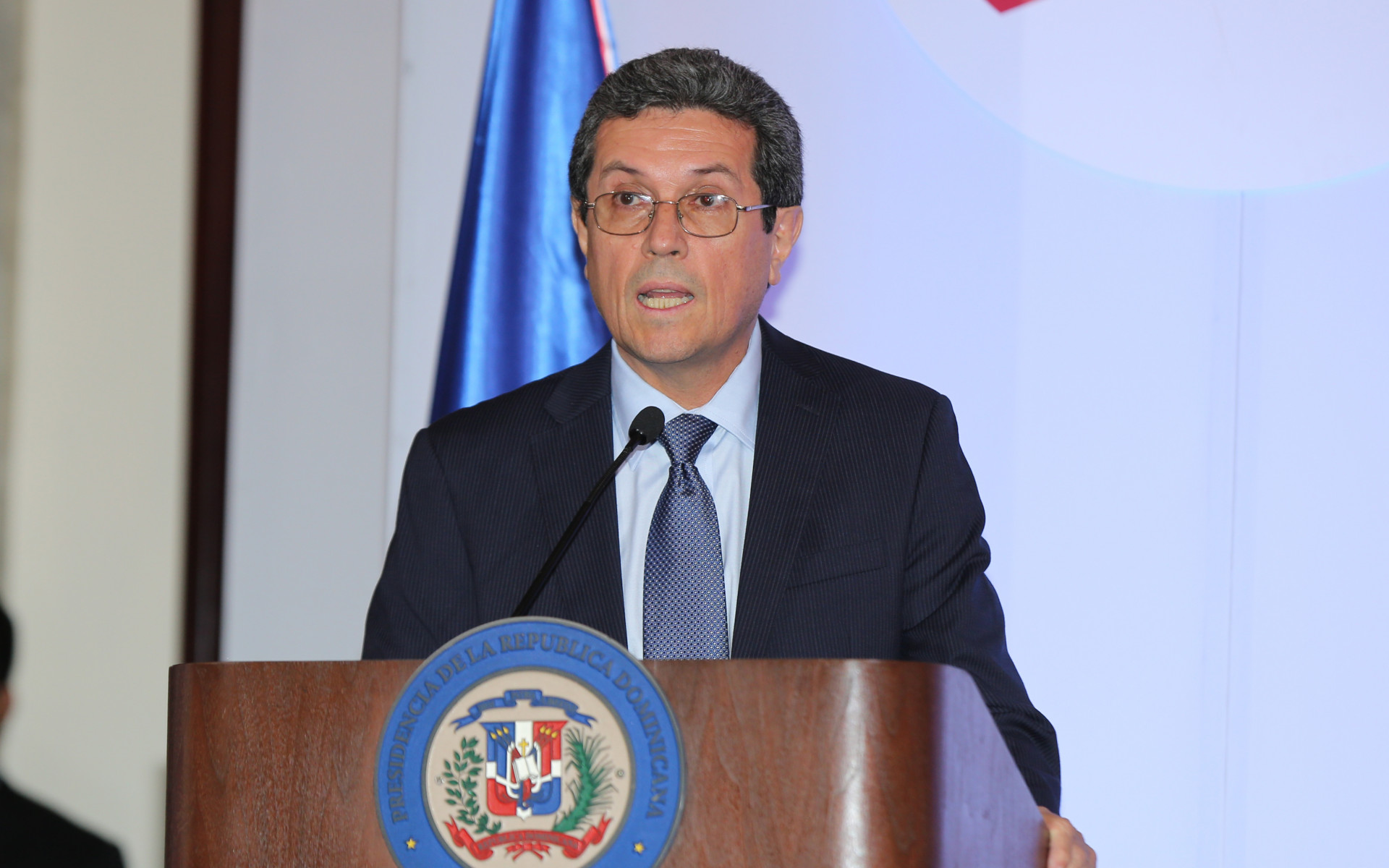 Jorge Requena, representante del Banco Interamericano de Desarrollo (BID), en el país, durante su discurso, en recepción por resultados de Estudio Socioeconómico de Hogares en República Dominicana, celebrada en el Salón Las Cariátides del Palacio Nacional.